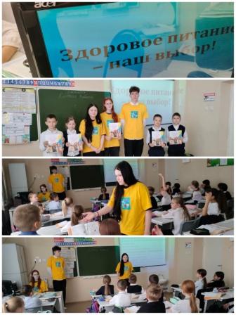 Волонтёры-старшеклассники школьного волонтёрского отряда «Радуга» вновь посвятили своё внимание вопросам здоровья подрастающего поколения. В рамках образовательной программы ребята подготовили яркие и познавательные презентации, посвящённые принципам правильного питания.