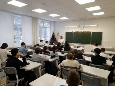18 декабря 2025 года ученики 8 "В" класса вместе с классным руководителем И.Ф. Тореевой посетили школу №65, где приняли участие в Уроке мужества. В ходе события состоялась встреча с воинами-участниками Специальной военной операции (СВО), которая стала важным и трогательным опытом для школьников.