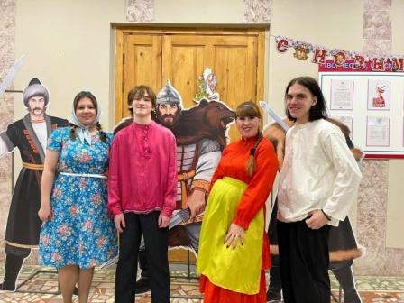 Совместно с советником директора по воспитанию, Ириной Александровной Ереповой, и народным театром "Родник" ребята представили спектакль "Лес рода". Наши юные артисты проникновенно сыграли роли молодых девушек и юношей, уходящих на войну.