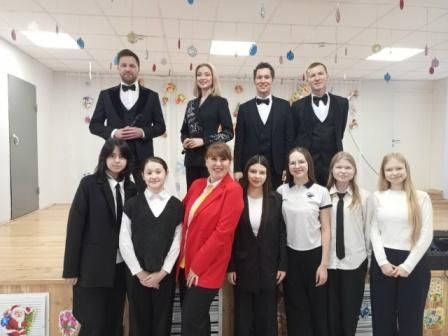 В зале царила праздничная атмосфера, ведь на концерте присутствовали ученики 10 А, 9-х и 8-х классов. Артисты "Сеспель" подарили чудесные новогодние песни, которые мгновенно подняли настроение всем!