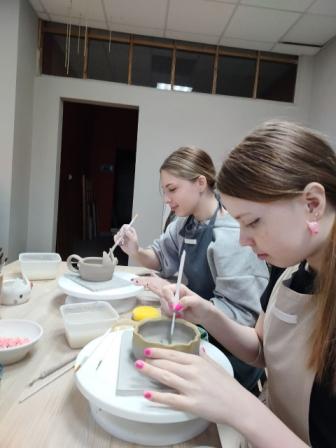 Мастер, который проводил занятие, оказался настоящим профессионалом и с радостью делился своими секретами и навыками. Обучающиеся узнали о различных техниках работы с глиной, а также о том, как правильно формировать изделия на гончарном круге.