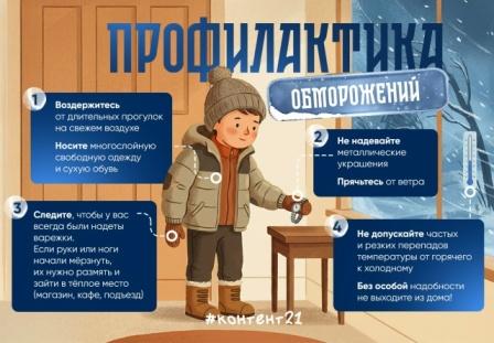 В такую погоду риск обморожений возрастает даже при недолгом пребывании на улице, особенно у детей. Пожалуйста, будьте внимательны: собираясь на прогулку, по дороге в школу и обратно, придерживайтесь простых мер предосторожности.