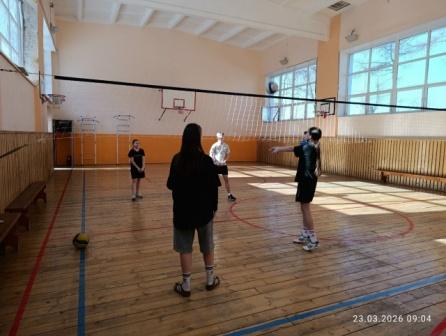 В период весенних каникул для обучающихся открыта возможность не прерывать тренировки и продолжать совершенствовать свои спортивные навыки. В частности, секция по волейболу продолжает свою работу под руководством учителя физической культуры В.А. Герасимова.