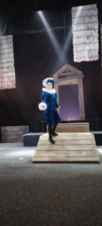 Спектакль – режиссерское прочтение авторских сонетов, в котором постановщик в поисках ответа на вопрос: «Кто же такой Шекспир?» приоткрывает завесу загадочной личности поэта. Ученица 3В класса нашей школы Маша К. играла маленького Шекспира.