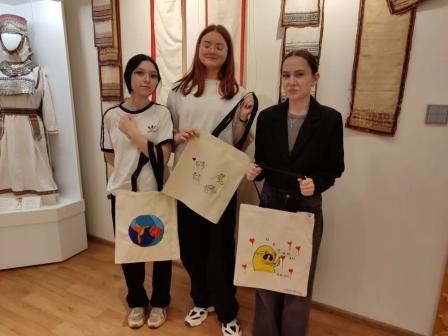 После выставки ученики 8А приняли участие в мастер-классе, где создали уникальные рисунки на шопперах, придав им самобытный чувашский колорит.