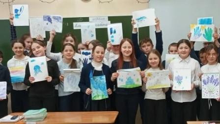 Ребята с интересом слушали, задавали вопросы и вместе завязывали символическую синюю ленту, знак того, что они против грубости и за доброту.