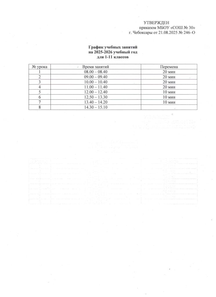 График учебных занятий на 2025-2026 учебный год